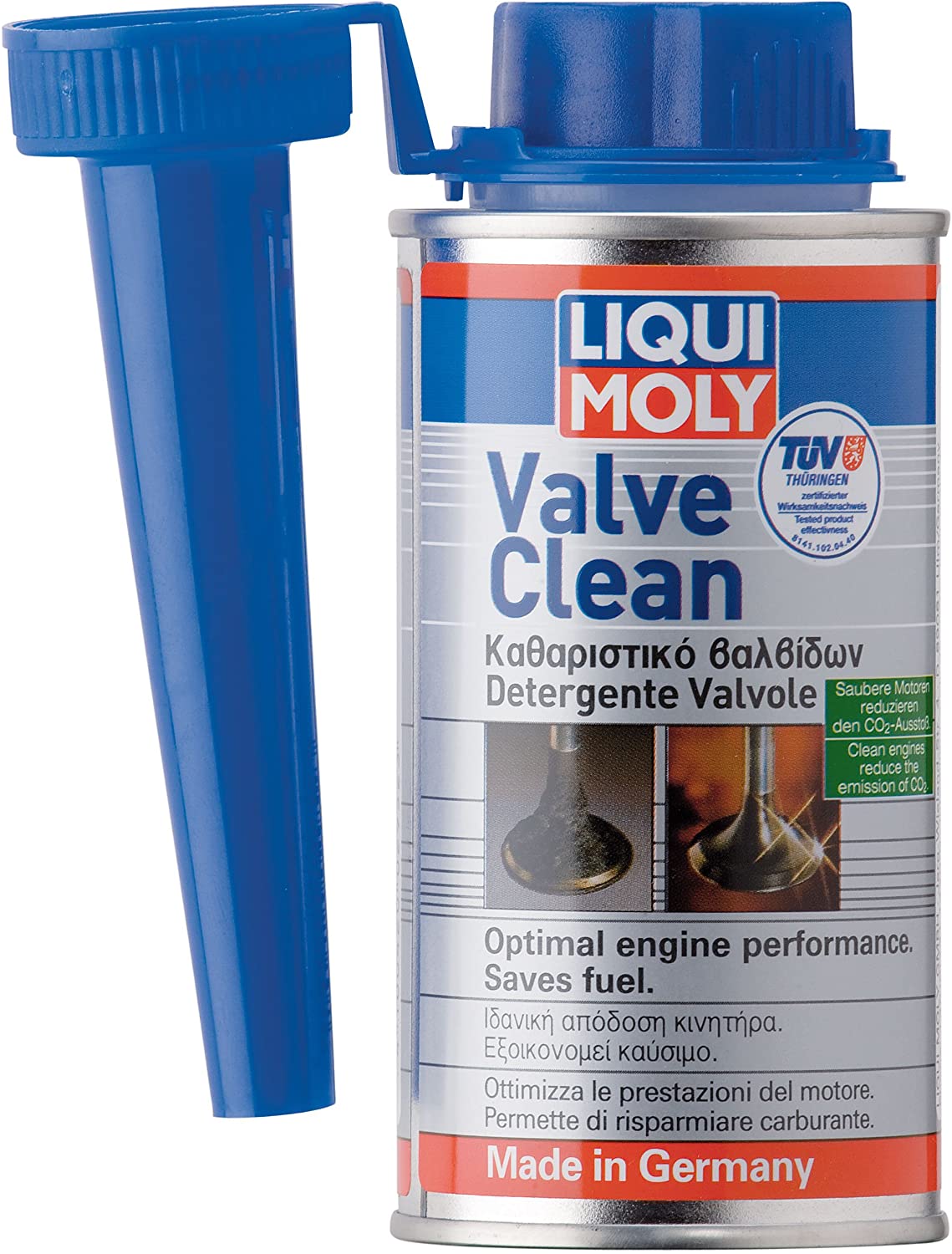 Detergente valvoleI motori sono soggetti a carichi estremi persino in normali condizioni di guida, quali il traffico in città o per raggiungere la sede di lavoro, brevi viaggi e imbottigliamenti. Questo tipo di guida provoca l’accumulo di depositi sulle valvole, nella camera di combustione e nel carburatore. Valve Clean pulisce le valvole, le prese di aspirazione, i carburatori e le camere di combustione e li mantiene puliti. I motori puliti consentono di consumare meno carburante. Favorisce eccezionali prestazioni del motore e l’utilizzo ottimale del carburante. La combustione produce un livello inferiore di agenti inquinanti e il motore non è sollecitato. Anticorrosivo. Provato e testato nei turbocompressori e nei convertitori catalitici.